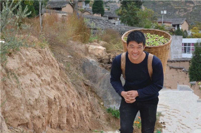 在崖角村,老百姓們把采摘好的果子背到收購現場按序交售,村民趙志曹說:“今年祥宇公司進村收購,