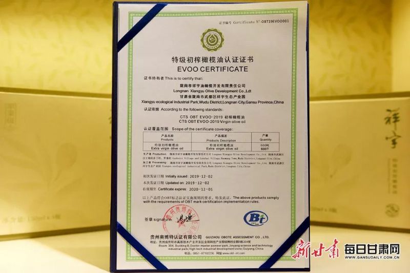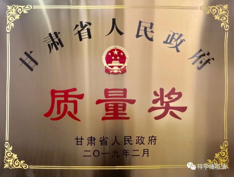 這一年,祥宇橄欖油榮獲甘肅省人民政府質量獎